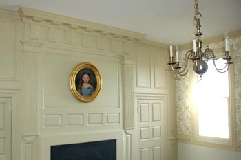 Its Georgian style together with its exquisite exterior and interior trim show the work of a master builder. William Buckland, who did Gunston Hall for Mr. Mason, was not only in the area at the time of the building but also appeared in Essex Court as a witness for Mr. McCall in 1766, when Mr. McCall entered Court action for a claimed riot about the Stamp Act which had occurred at his home.It is believed that William Buckland did the wood work and trimming for this house. A black marble mantel in the drawing room was shattered by the shelling from a British gunboat in the Rappahannock River during the war of 1812 but was put together again and is still in use in the room.
