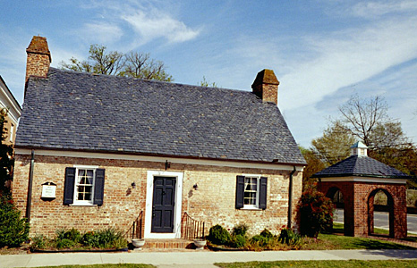 Old Clerk's Office: Court records show that in 1808 there was ordered the building of a "Clerk's Office with walls 1 1/2 brick thick, by 32 by 18 feet, roof covered by slate and to have one room 18 by 22 and the other 18 by 10. The office room to have a floor of brick or stone and the other room planked." One year later an additional chimney was ordered, and the records were ordered to be removed to the new Clerk's Office. (They had been kept at Smithfield by the Clerks Lees).
