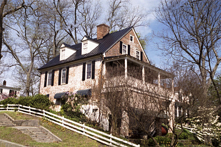 Latane-Customs House: This old brick house is believed to be older than 1750 when its first recorded owner was Archibald Ritchie. It is located on Slip Lot 77 and in early times adjoined the Rappahannock River bank where its basement floor is still just above high water mark, while the rest of the building is two stories above this, with a dormer roof.